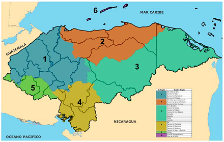FUENTE: elaborado por la Dirección de Demarcación y Fronteras de la Secretaria de Relaciones Exteriores en base a la información de las Regiones de Desarrollo contenidas en la Visión de País y Plan de Nación.